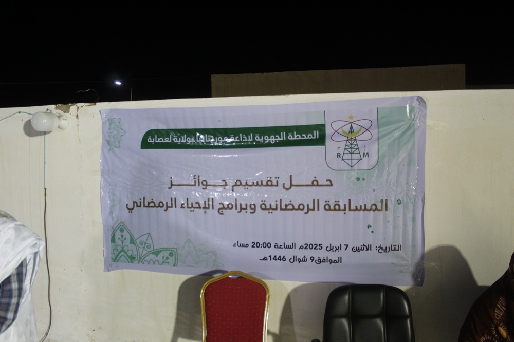 أشرف والي لعصابه السيد احمدو عداهي اخطيره، ليلة البارحة بمباني المحطة الجهوية لإذاعة موريتانيا في مدينة كيفه، على توزيع جوائز المسابقة الرمضانية المنظمة من قبل المحطة الجهوية لإذاعة موريتانيا في ولاية لعصابه.