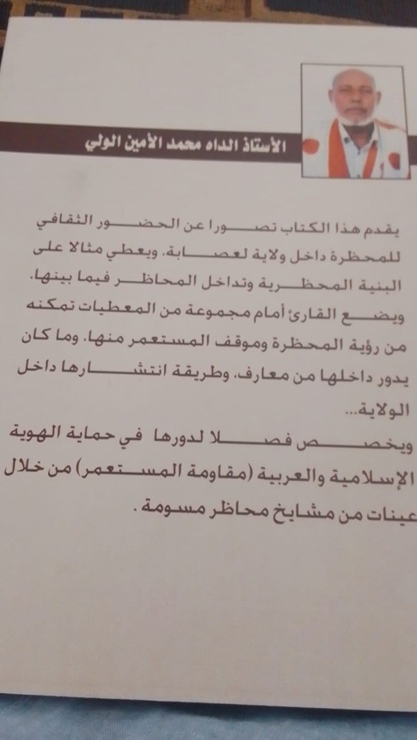 ويضع القارئ أمام مجموعة من المعطيات تمكنه من رؤية المحظرة وموقف المستعمر منها. وما كان يدور داخلها من معارف وطريقة انتشارها داخل الولاية...