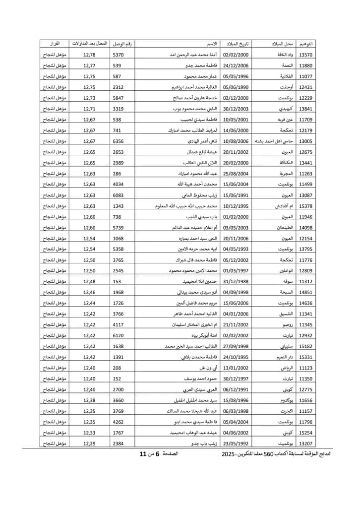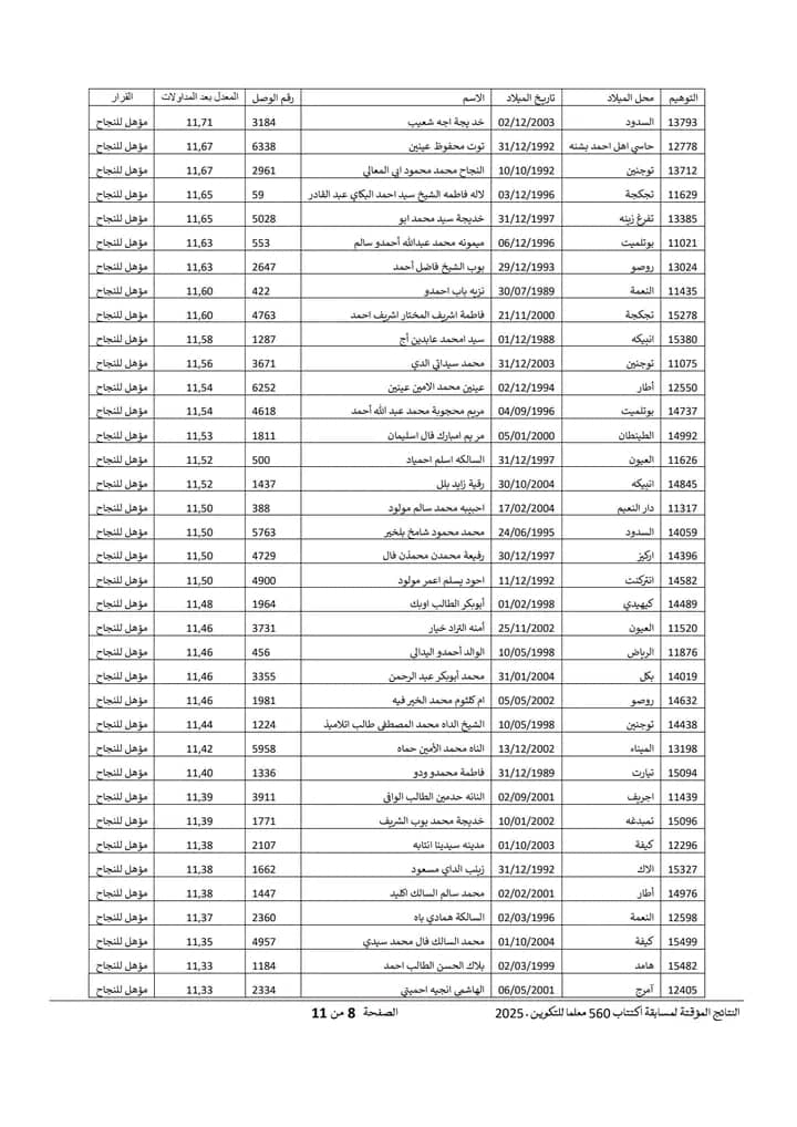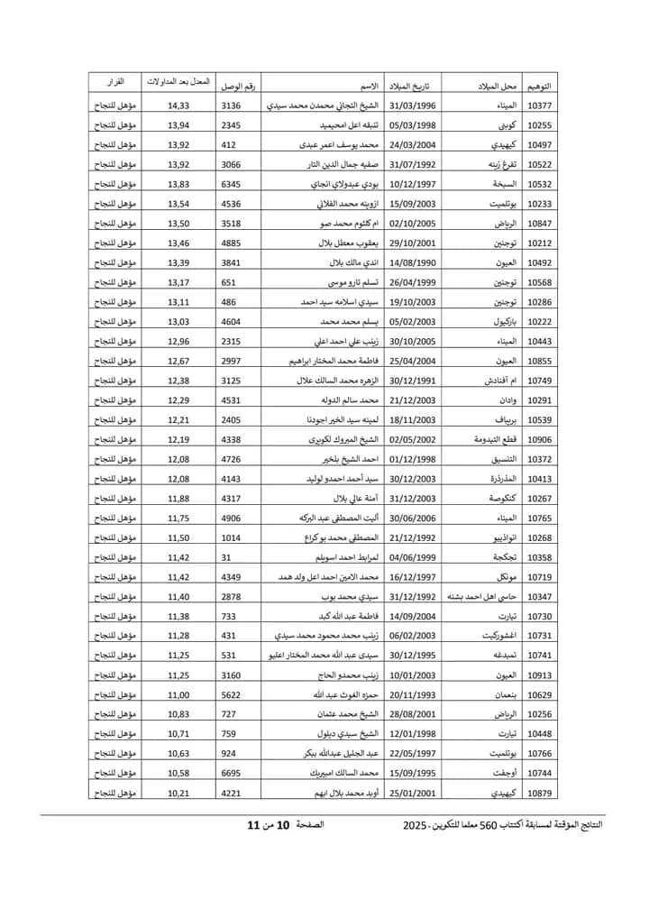 Nov 18 / التعليقات إعلان نتائج مسابقة مقدمي خدمات التعليم لسنة 2025 أعلنت وزارة التربية وإصلاح النظام التعليمي عن نتائج مسابقة مقدمي خدمات التعليم لسنة 2025.وتتيح هذه النتائج للمشاركين في المسابقة الاطلاع على أسماء الناجحين والناجحات الذين سيتم دمجهم ضمن الطواقم التربوية في مختلف المؤسسات التعليمية الوطنية. https://www.education.gov.mr/ar/node/1047 ثلاثاء, 2025/11/18 - 20:12 إضافة تعليق جديد اسمك التعليق About text formats Restricted HTML وسوم إتش.تي.إم.إل المسموح بها: <a href hreflang> <em> <strong> <cite> <blockquote cite> <code> <ul type> <ol start type> <li> <dl> <dt> <dd> <h2 id> <h3 id> <h4 id> <h5 id> <h6 id> تفصل السطور و الفقرات تلقائيا. Web page addresses and email addresses turn into links automatically.