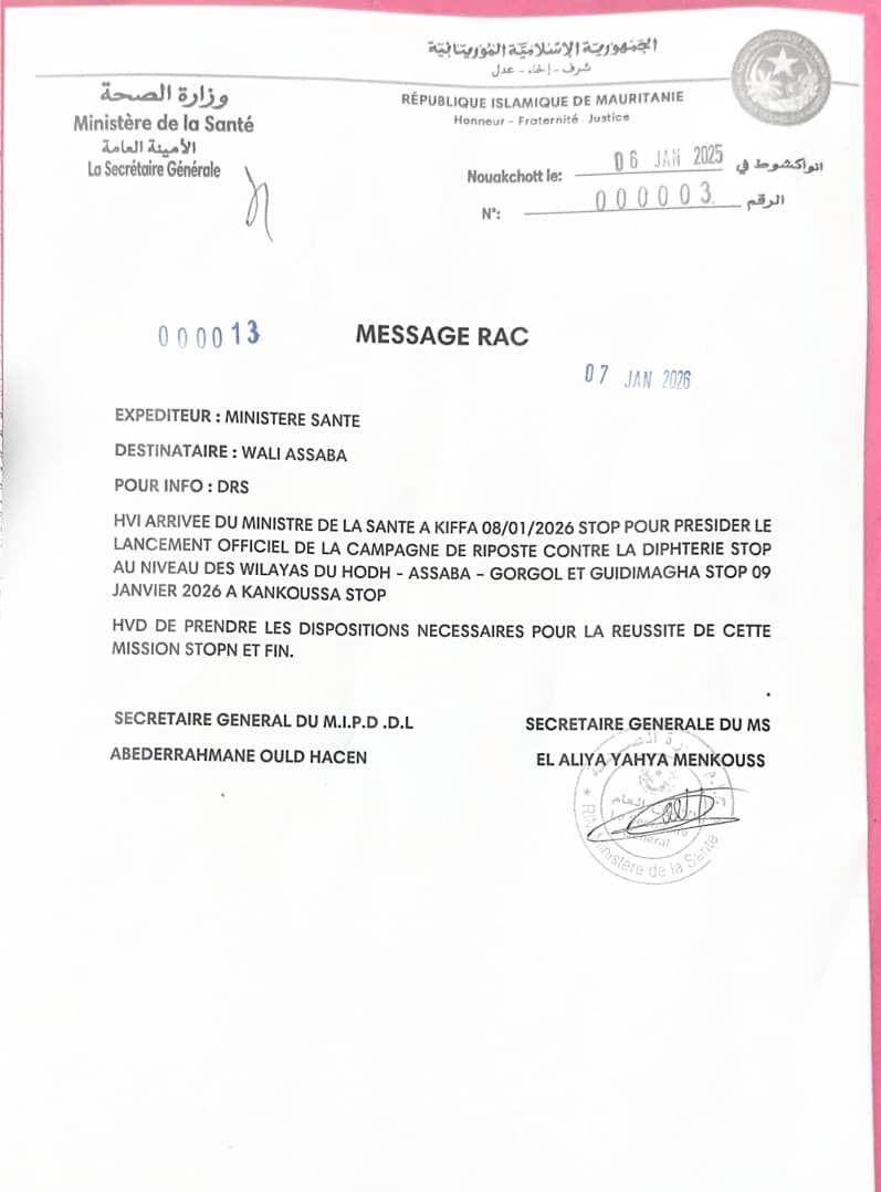 أعلنت وزارة الصحة عن البدء في حملة تلقيح ضد مرض الديفتاريا في عدة ولايات بينها لعصابه، بالإضافة إلى  القيام بالتعبئة والتحسيس من أجل الوقاية.
