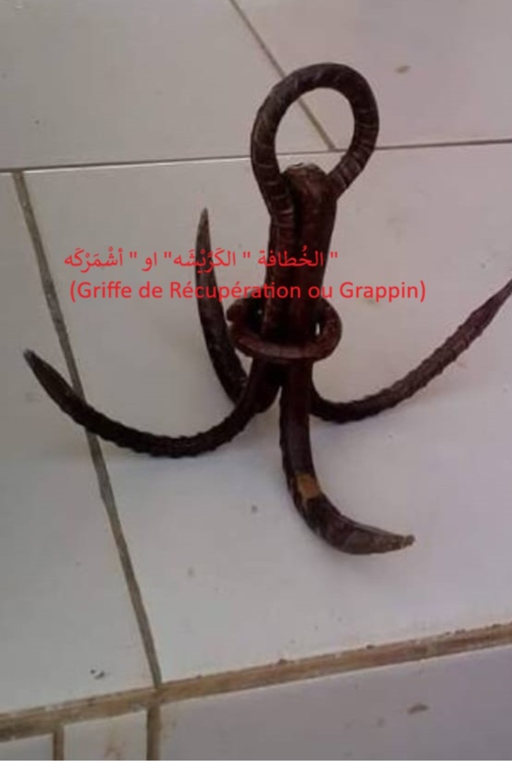 2) - أن الآلة تصلح لسحب الأغراض الضائعة في أعماق الآبار ، و بهذا تكون : خًطافَة "كَرَّيْشَه" عند البعض أو " أشْمَرْكَه" عند البعض الآخر ( Griffe de Récupération ou Grappin) ، و هذا أيضا لا يستقيم لأن حبال الجلد التي لا يوجد غيرها مع عوديْ الآلة ، بمجرد وقوعها في الماء ستتمدد و لن تتمكن من اصطياد أو خطف أي شيء من قاع البئر ، إذ أكثر ما يوجد هناك : حبال و دلاء و اسطال...إلخ .