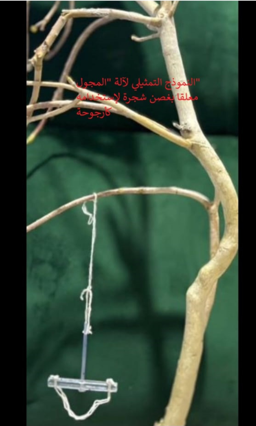 4) - أن الآلة مُعَدَّة لربط الدواب "دارُوكَه" ( Iien ou Attache) ، هذا ما اطَّلَعْت عليه في تسجيل بالصوت و الصورة ، يبدو من لغة صاحبه أنه خليجي يشرح كيف تثَبَّت هذه الآلة إلى الأرض في وتد او جذع شجرة او أي شيء ثابت مُعَدٍ لذلك ، و يتم هذا التثبيت عن طريق ربط أو لف الحبل الموجود في طرفيْ العود المثقوب في الوسط ، لتربط رجل الدابة في الحبل الموجود في طرف العود الآخر ، و تسمح لها حرية دوران العود المتصل بحبل ربطها عن طريق مروره من العود الآخر ، بالتنقل و الحركة في جميع الاتجاهات دون أن ينعقد الحبل من جديد أو يلتف حول رجلها أو حول وتد التثبيت ، و من إتاحة فرصة هذا التجول الحر للدابة و هي في مربطها ، سمى الآلة صاحبها ب : (المِجْوَل) .