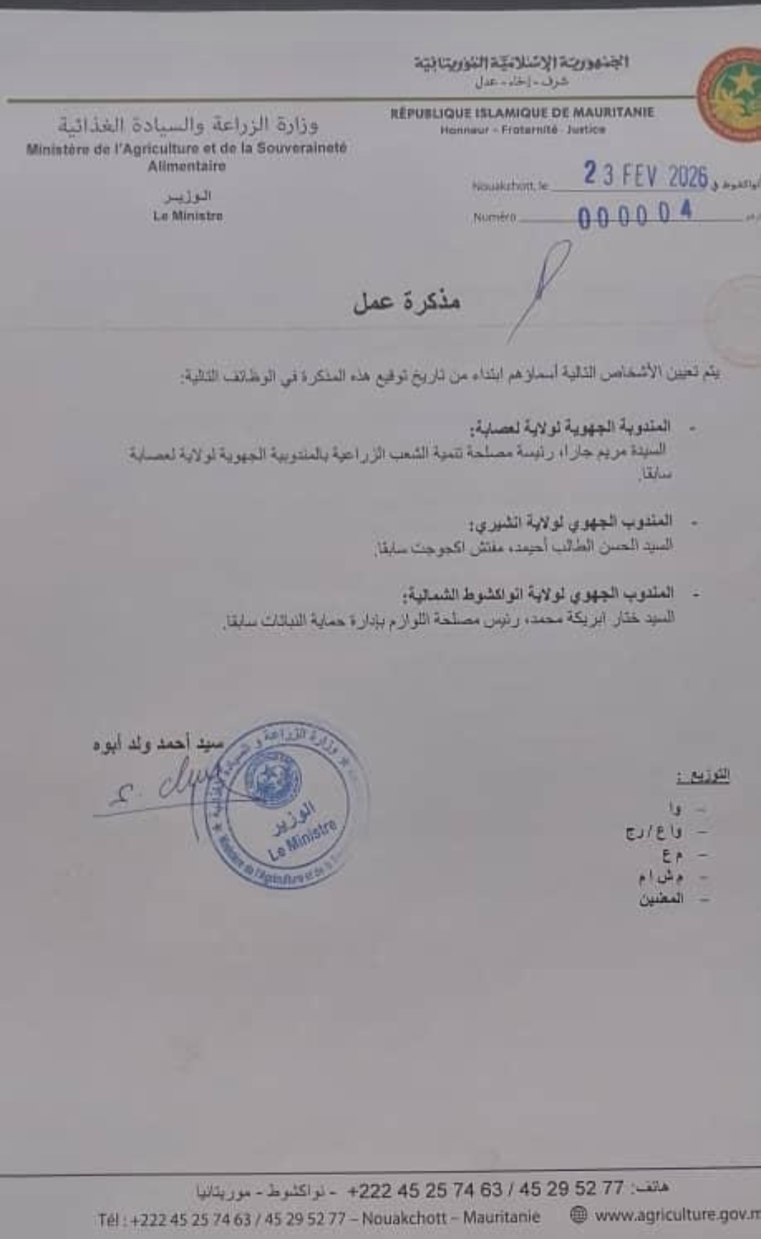 Feb 23 / التعليقات مريم جارا مندوبة جهوية للزراعة بولاية لعصابه ضمن تعيينات أخرى( أسماء) أصدرت وزارة الزراعة والسيادة الغذاية اليوم ال 23 فبراير مذكرة تعيينات لمندوبين جهويين للقطاع ببعض الولايات شملت تعيين الأخت مريم جارا مندوبة جهوية للوزارة بولاية لعصابه . اثنين, 2026/02/23 - 21:58 إضافة تعليق جديد اسمك التعليق About text formats Restricted HTML وسوم إتش.تي.إم.إل المسموح بها: <a href hreflang> <em> <strong> <cite> <blockquote cite> <code> <ul type> <ol start type> <li> <dl> <dt> <dd> <h2 id> <h3 id> <h4 id> <h5 id> <h6 id> تفصل السطور و الفقرات تلقائيا. Web page addresses and email addresses turn into links automatically.