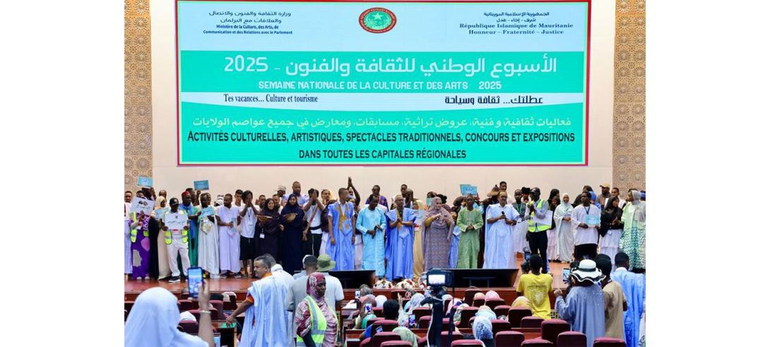 تحت الرعاية السامية لرئيس الجمهورية، السيد محمد ولد الشيخ الغزواني، أشرف وزير الثقافة والفنون والاتصال والعلاقات مع البرلمان، الناطق باسم الحكومة، السيد الحسين ولد مدو، اليوم الأحد من قصر المؤتمرات في نواكشوط، على افتتاح الأسبوع الوطني للثقافة والفنون للعام 2025، تحت شعار “عطلتك ..ثقافة وسياحة”.