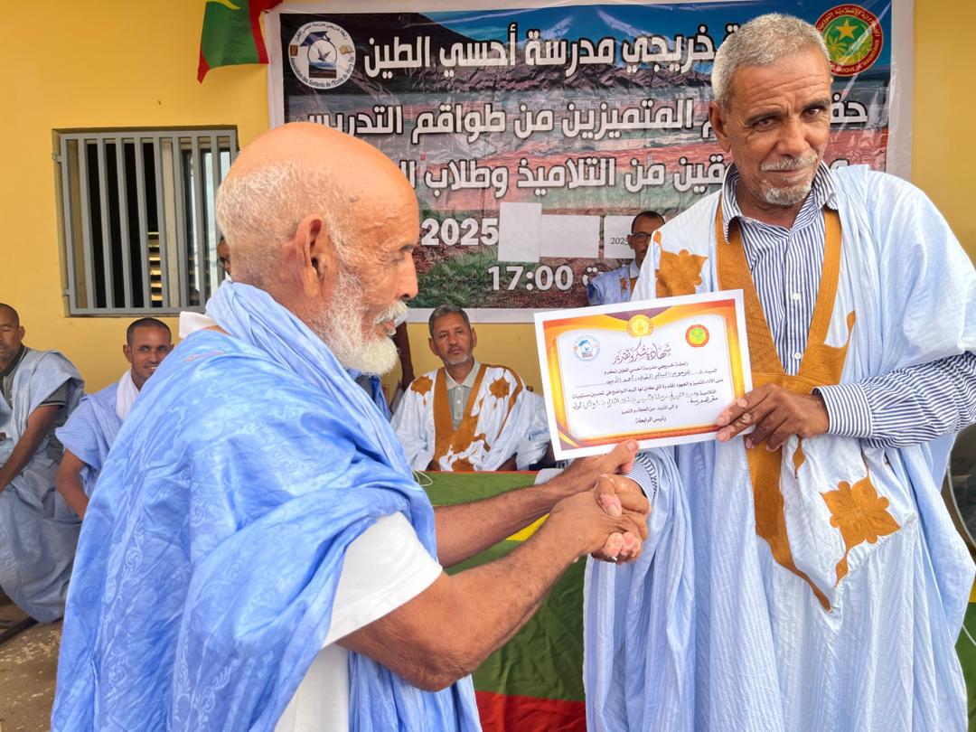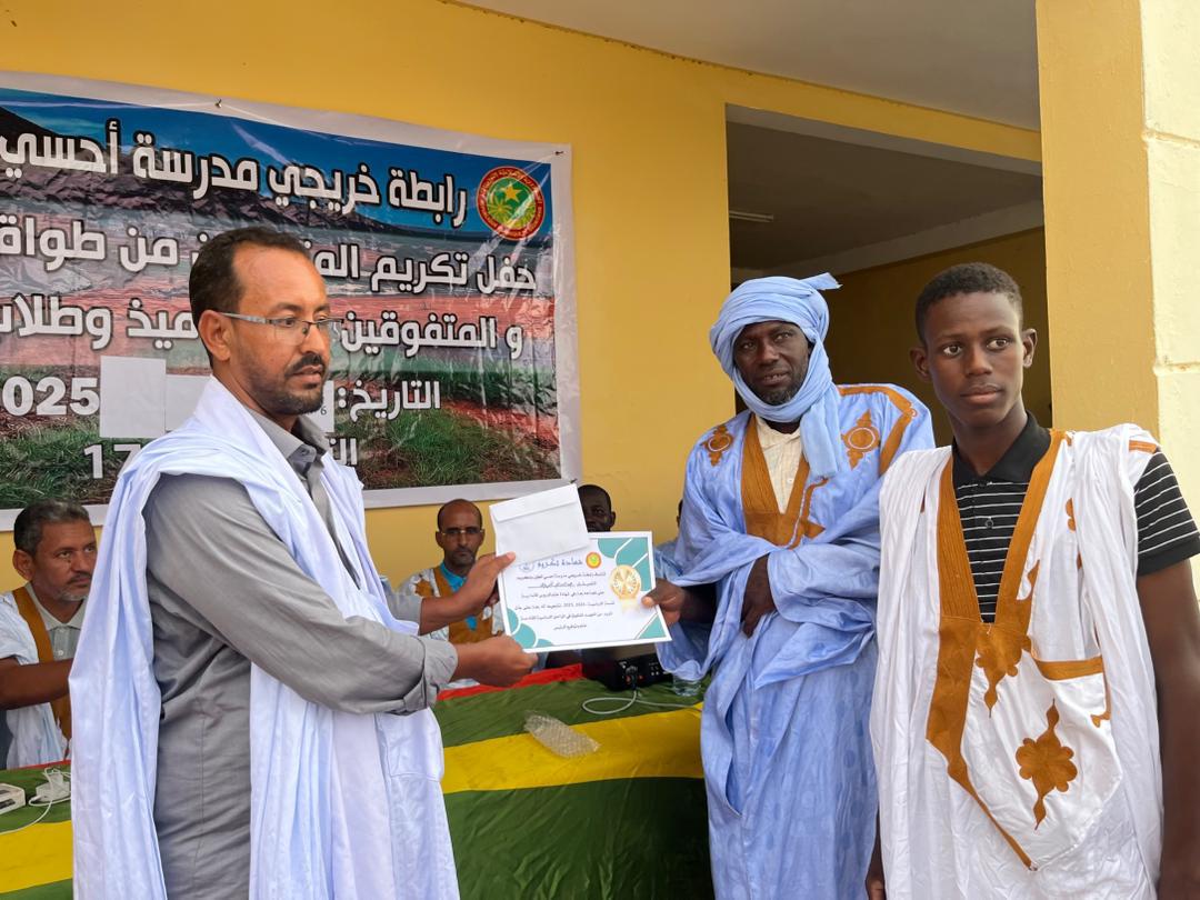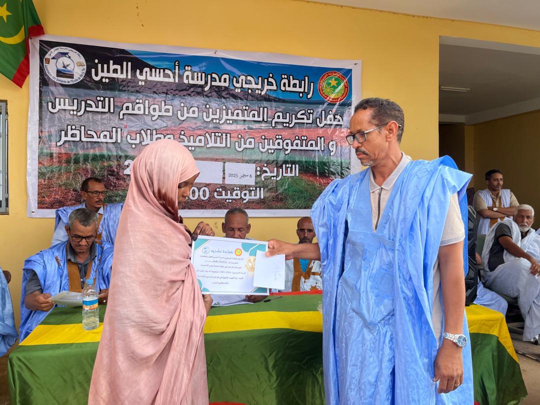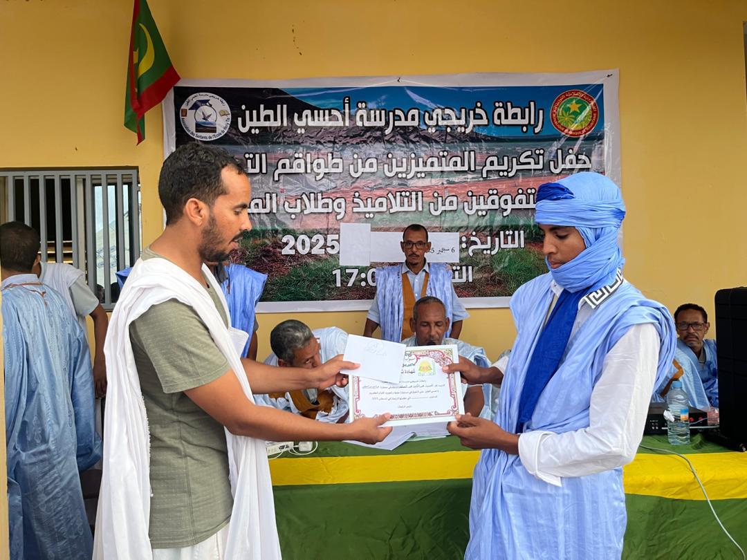 نظمت رابطة خريجي مدرسة احسي الطين مساء السبت 6 سبتمبر 2025،حفلا لتكريم المتميزين من المدرسين وشيوخ المحاظر والمتفوقين من التلاميذ في أقسام التجاوز وجميع الناجحين في مسابقتي دخول السنة الاولى إعدادية وشهادة الاعدادية على مستوى قرية احسي الطين والثلاثة الأوائل على مستوى كل محظرة من محاظر القرية.