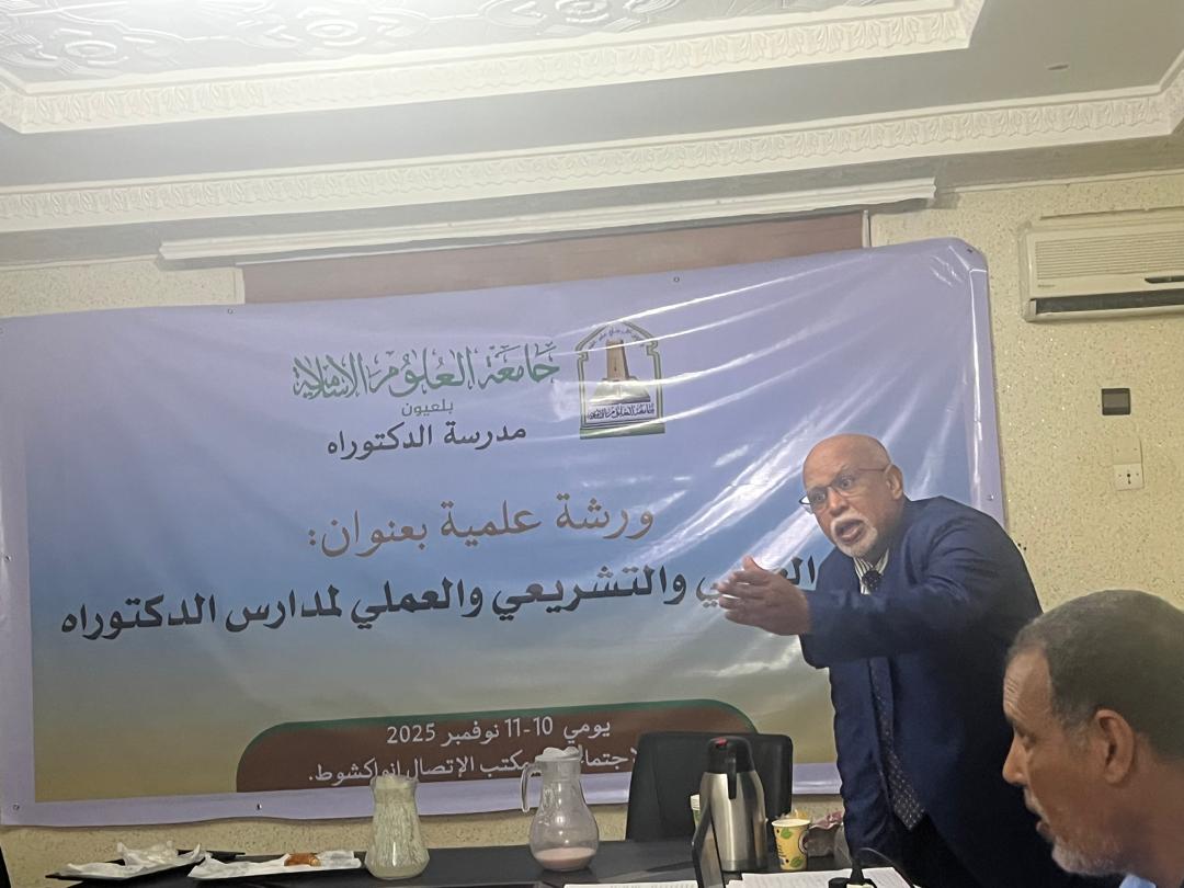 نظّمت مدرسة الدكتوراه بجامعة العلوم الإسلامية بلعيون، يومي 10 و11 نوفمبر 2025، ورشة علمية بعنوان: "الإطار العلمي والتشريعي والعملي لمدارس الدكتوراه"، وذلك بقاعة الاجتماعات بمكتب الاتصال في نواكشوط.