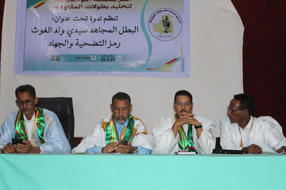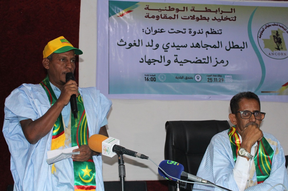 اصالة عن نفسي ونيابة عن الرابطة الوطنية لتخليد بطولات المقاومة يشرفني حضوركم معنا لهذه الندوة وأهنئكم بمناسبة عيد الاستقلال الوطني وكافة الشعب الموريتاني.