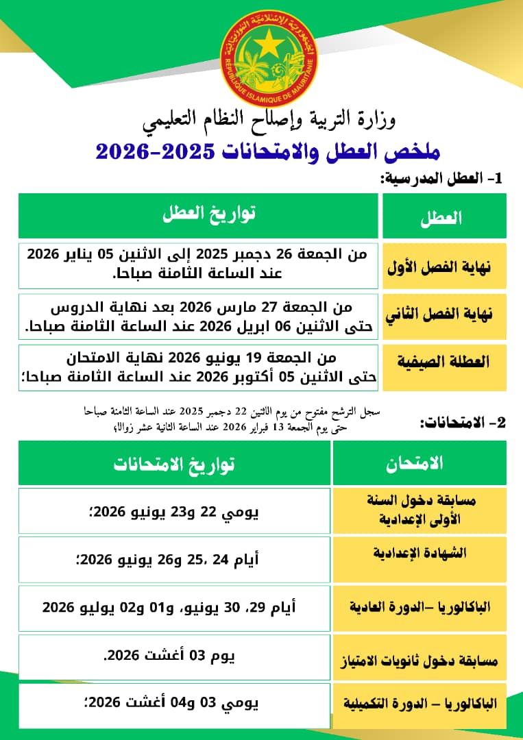 Dec 02 / التعليقات وزارة التربية تعلن جدول الامتحانات والمسابقات للعام الدراسي 2025_ 2026(انفوغراف ) اعلنت وزارة وإصلاح نظام التعليم جدول الامتحانات والعطل المدرسية والمسابقات الوطنية للعام الدراسي، 2025/2026. ثلاثاء, 2025/12/02 - 10:36 إضافة تعليق جديد اسمك التعليق About text formats Restricted HTML وسوم إتش.تي.إم.إل المسموح بها: <a href hreflang> <em> <strong> <cite> <blockquote cite> <code> <ul type> <ol start type> <li> <dl> <dt> <dd> <h2 id> <h3 id> <h4 id> <h5 id> <h6 id> تفصل السطور و الفقرات تلقائيا. Web page addresses and email addresses turn into links automatically.